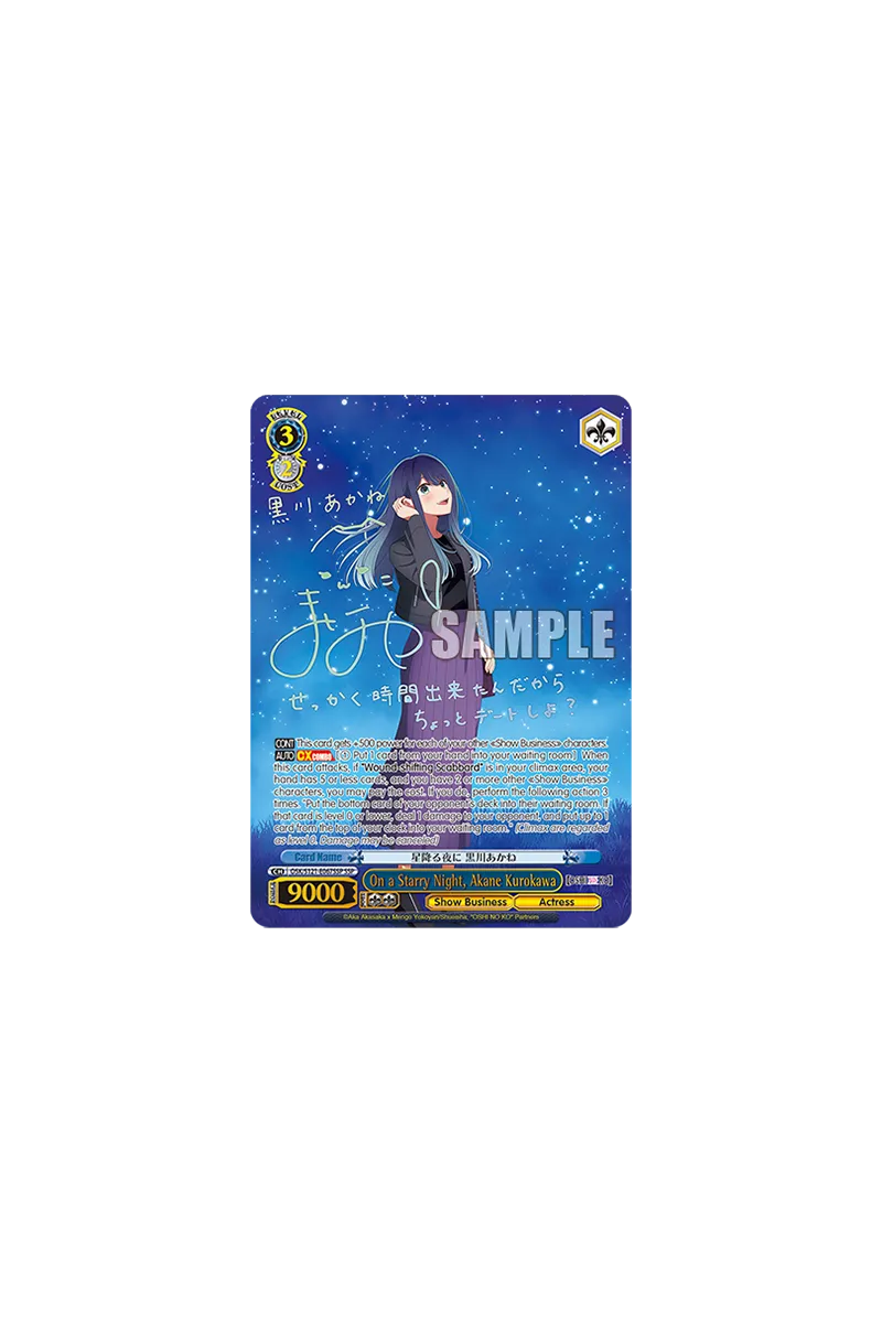 El fenómeno del anime Oshi no Ko regresa a Weiß Schwarz con su esperada segunda expansión. Este set amplía la colección con nuevas cartas protagonizadas por personajes icónicos como Aqua, Ruby, Kana, Akane, MEMcho y Ai, incluyendo ilustraciones inéditas creadas especialmente para esta edición.